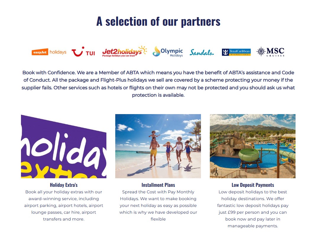 Destinations: Benidorm, Tenerife, Costa del Sol, Majorca, Corfu, Rhodes, Gran Canaria, Algarve